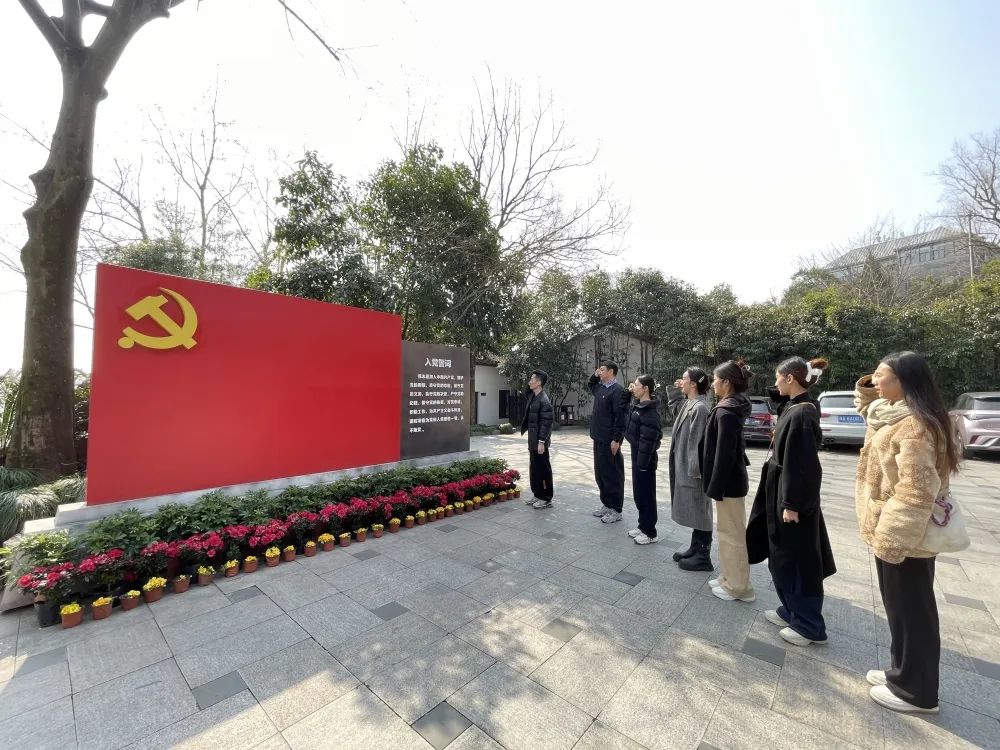 ? ? 參觀過后,支部黨員面對鮮紅的黨旗重溫入黨誓詞。